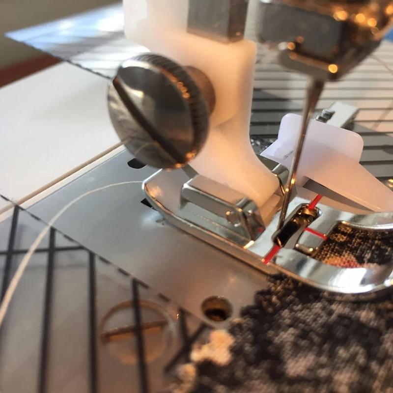 • Der Nähfuß hat ein "Lineal" mit einer Führung, mit der Sie die Führung an einer beliebigen Stelle platzieren können.